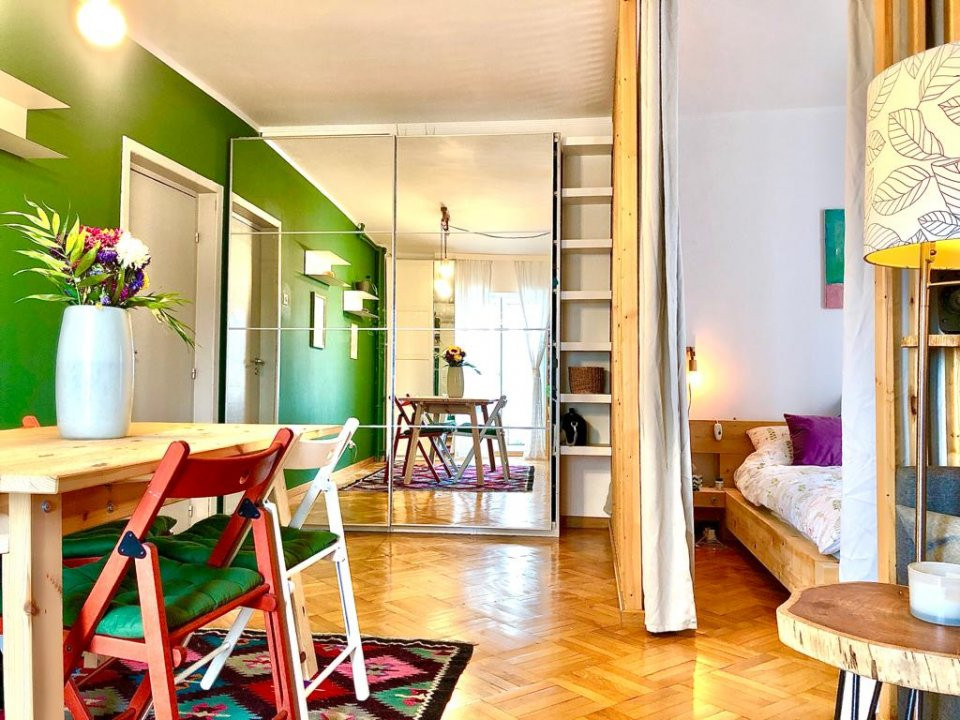 Studio - Unirii. 2 balcoane. Vedere panoramica. Mobilat si utilat.