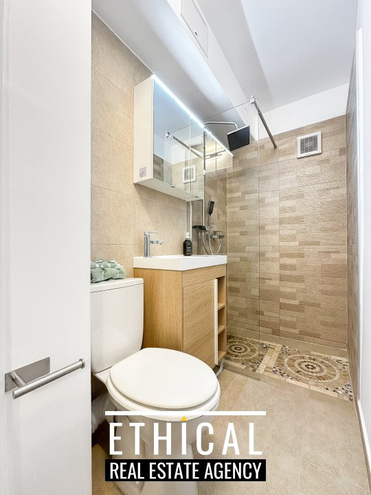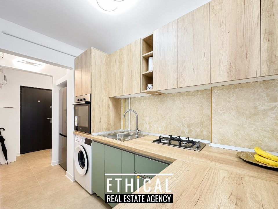 Apartamentul are tot ce isi poate dori cineva pentru a locui, exact ca in forografii. Este utilat complet cu plita pe gaz, cuptor electric, cuptor cu microunde, frigider, TV, aer conditionat, masina de spalat rufe etc.